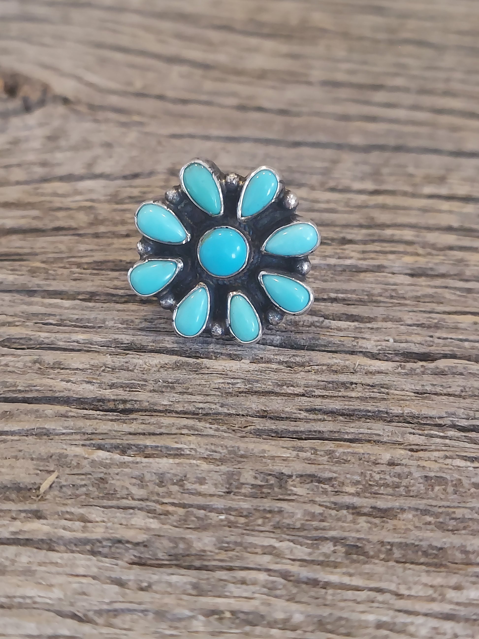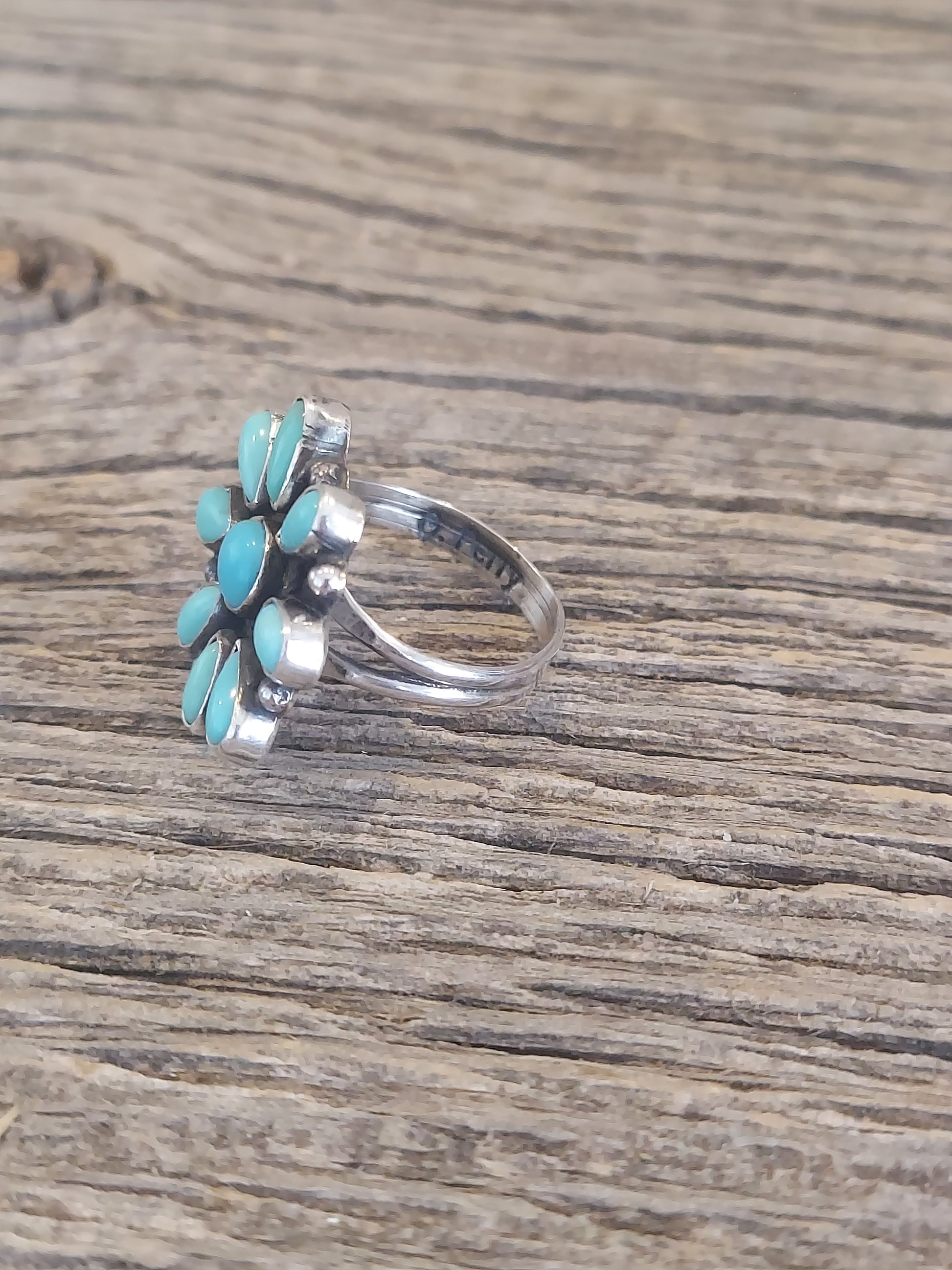 Sterling Silver Flower Cluster Turquoise Ring Hallmarked and Stamped