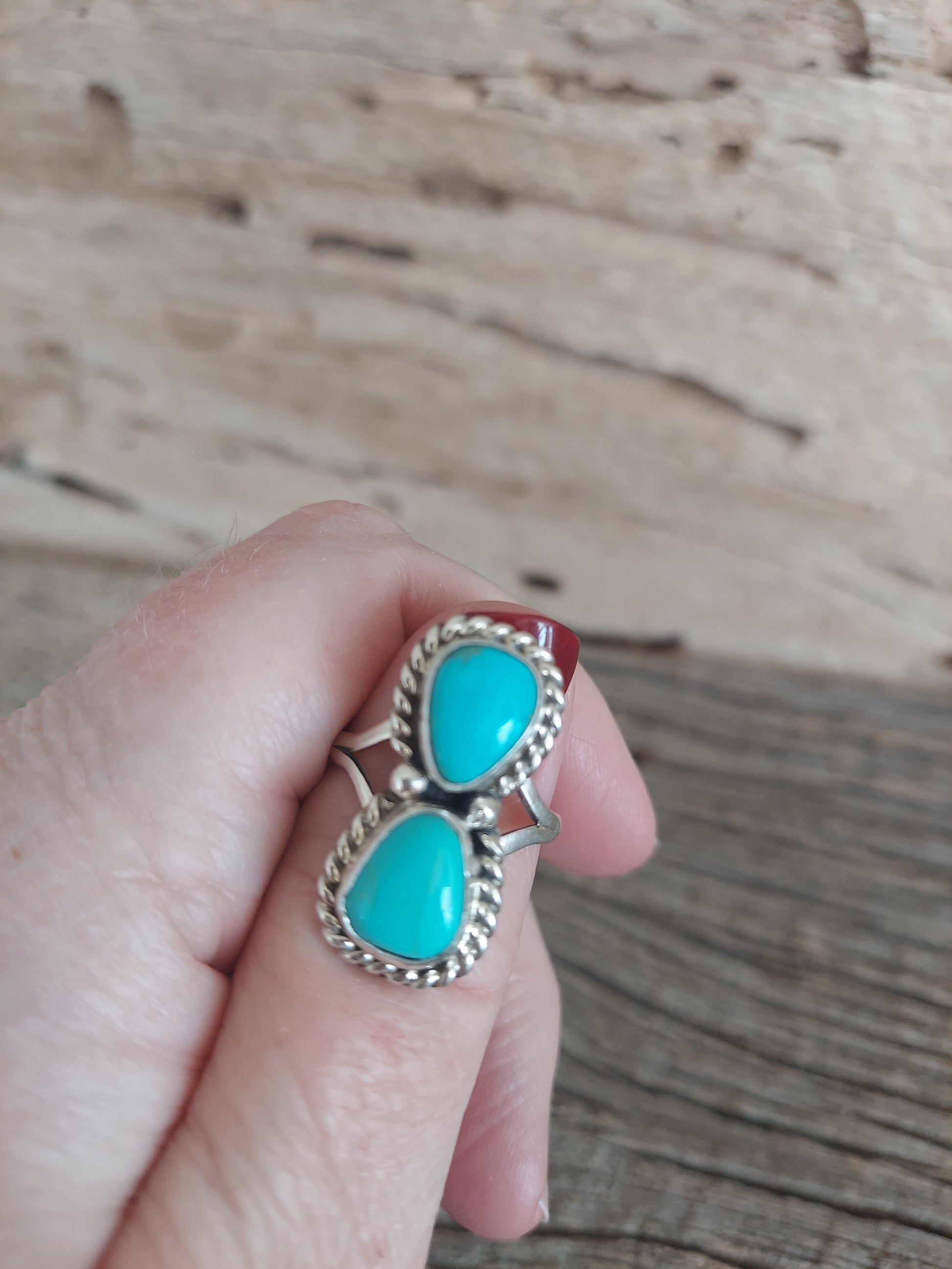 Sterling Silver Two Turquoise Stone Ring Hallmarked and Stamped