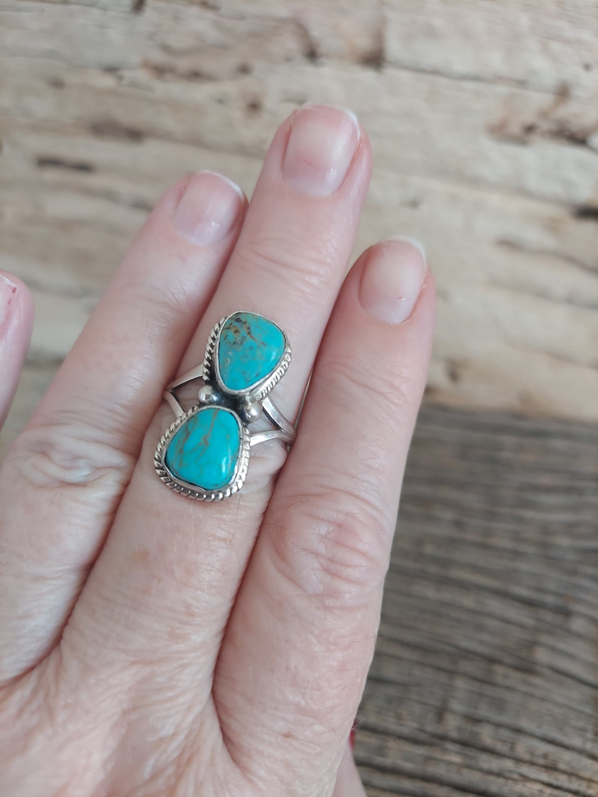 Sterling Silver Two Stone Turquoise Ring Hallmarked and Stamped