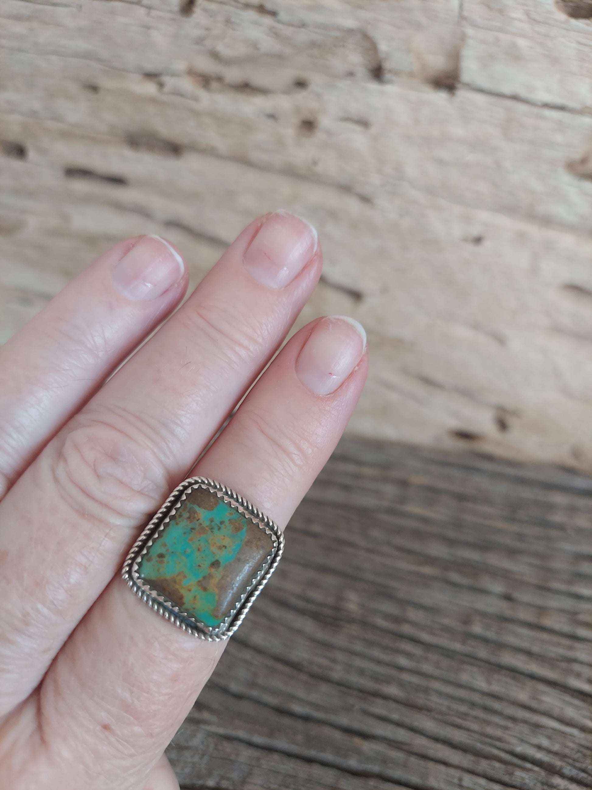 Sterling Silver Square Green and Brown Stone. Stamped Sterling Silver.