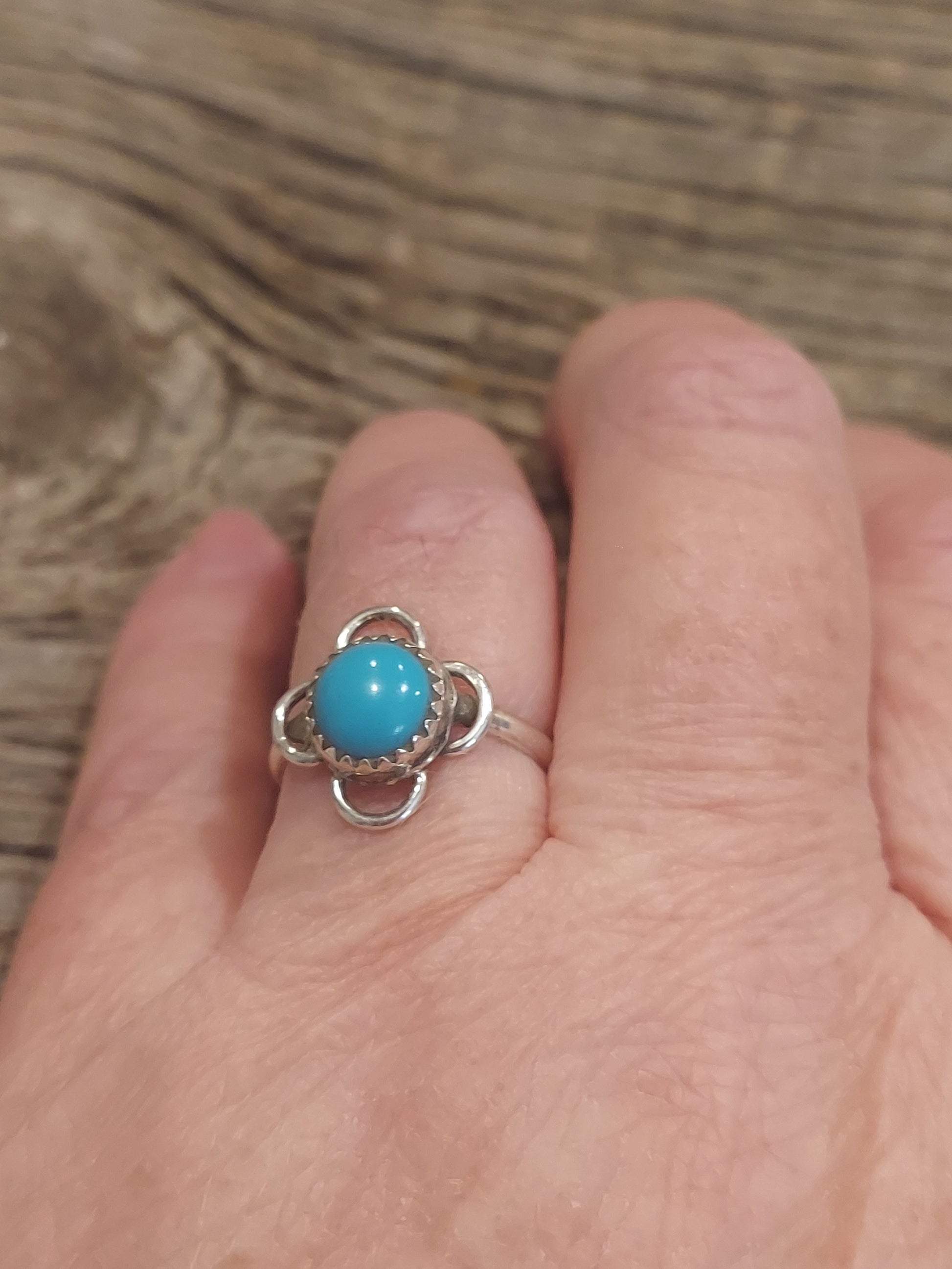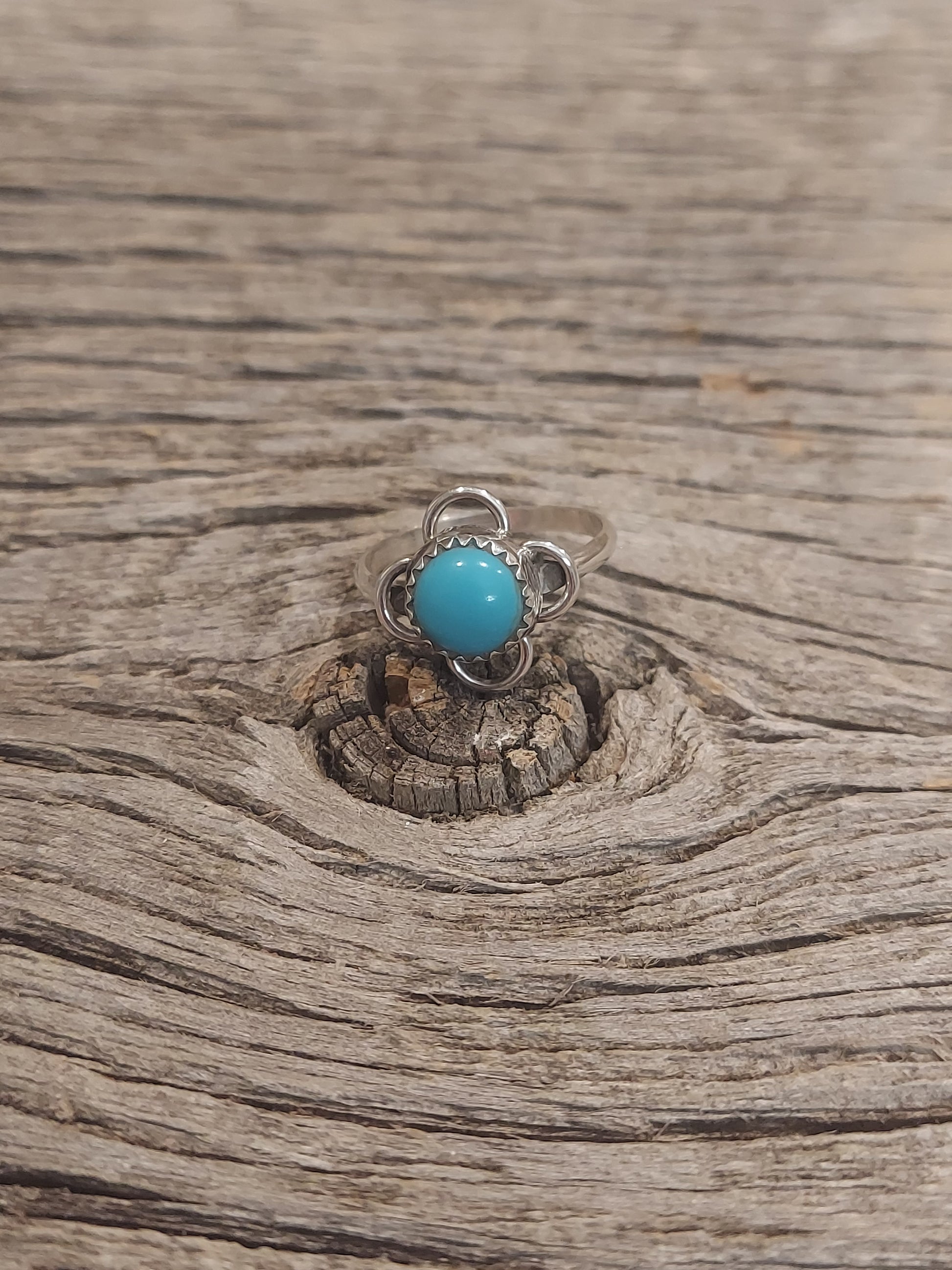 Sterling Silver Ring with Round Turquoise Stone and 4 Petals