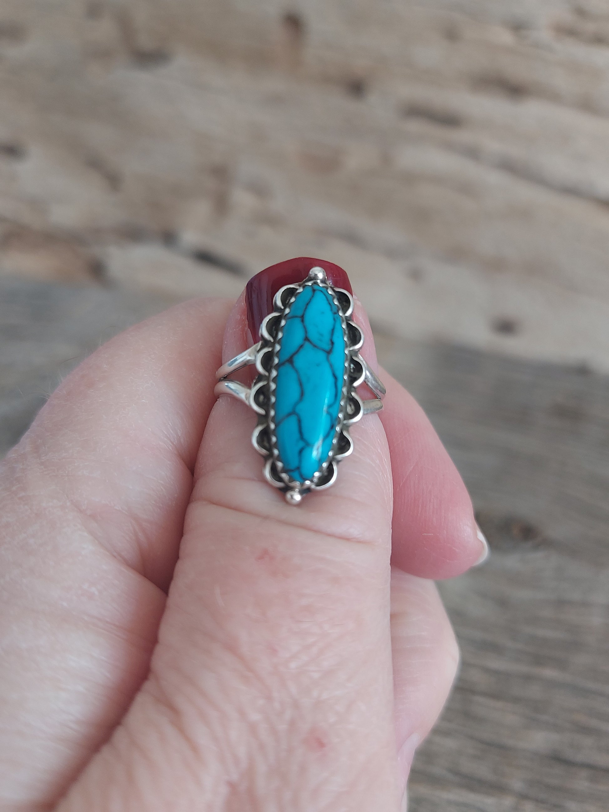 Sterling Silver Blue Turquoise Stone. Stamped Sterling.