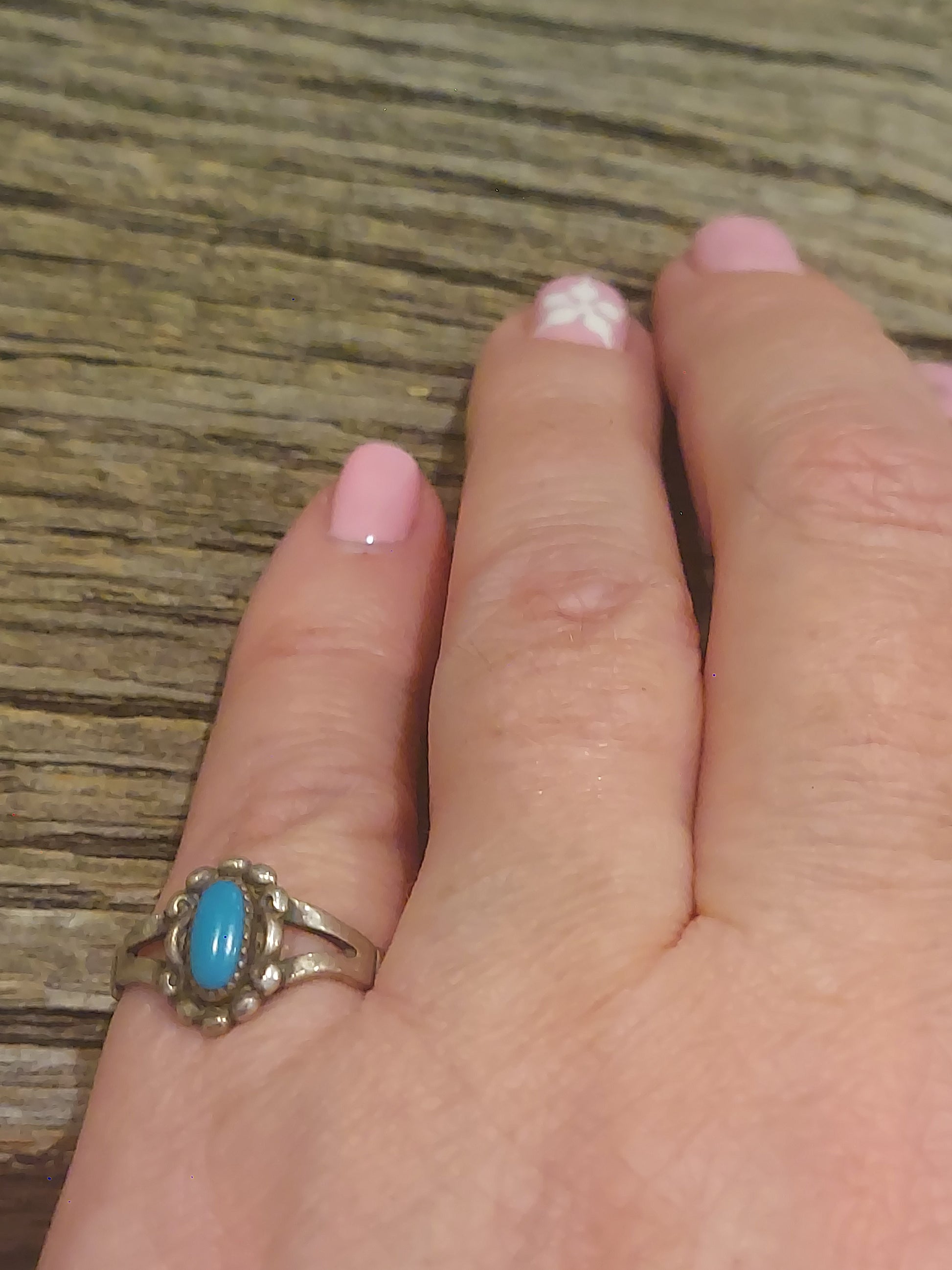 Sterling Silver Dainty Oval Shaped Turquoise Ring