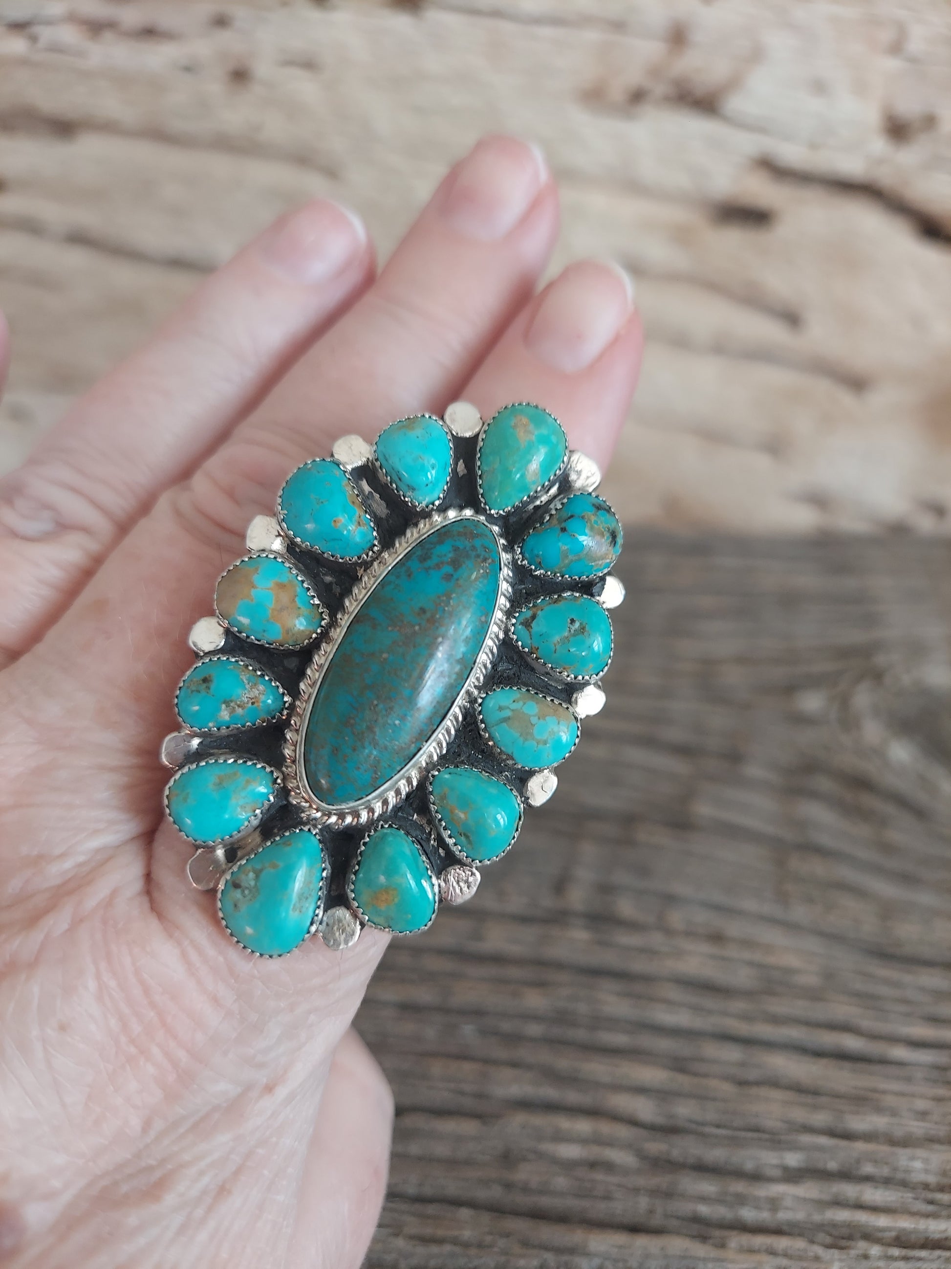 Sterling Silver Large Green Cluster Ring Hallmarked and Signed