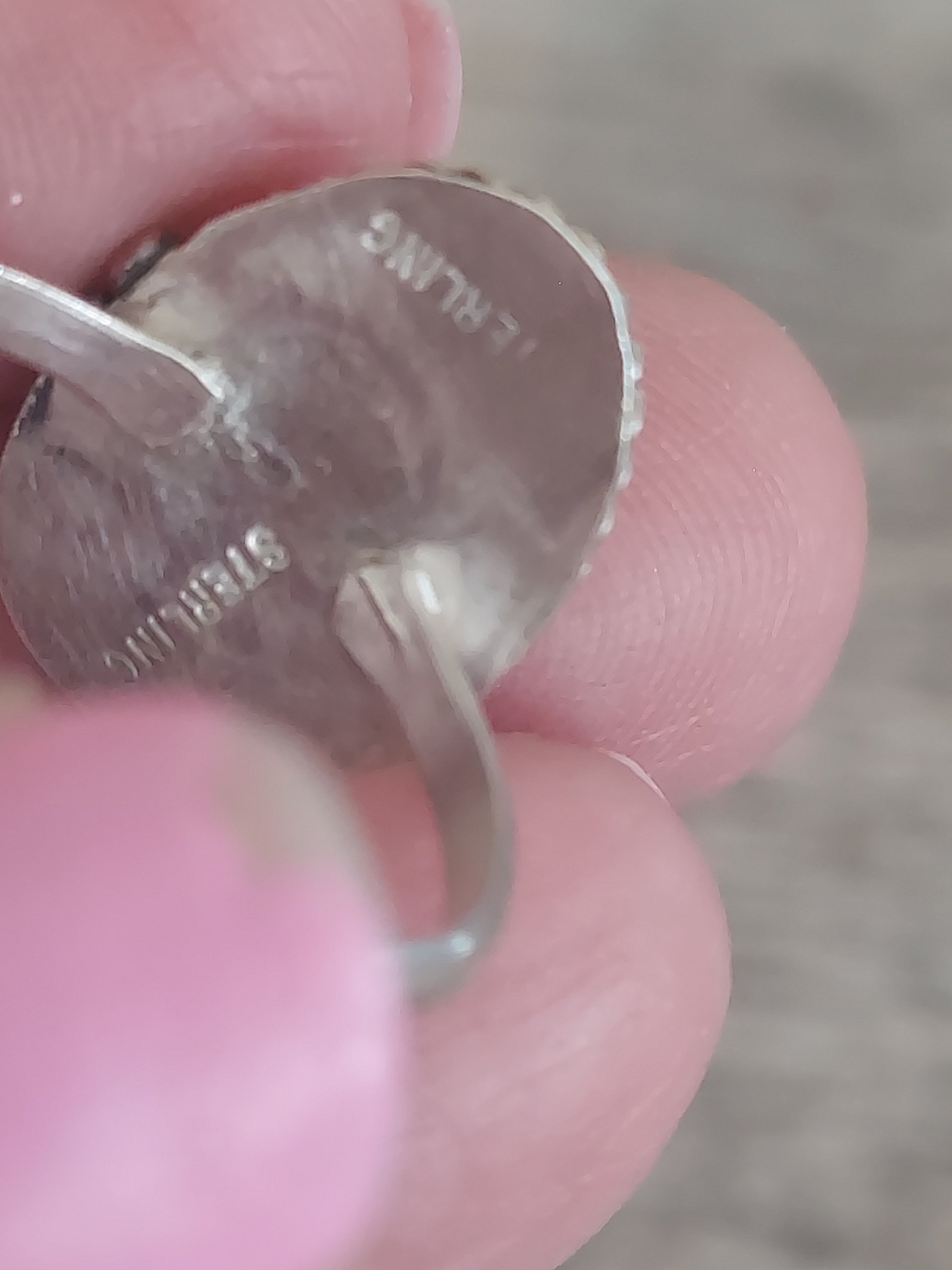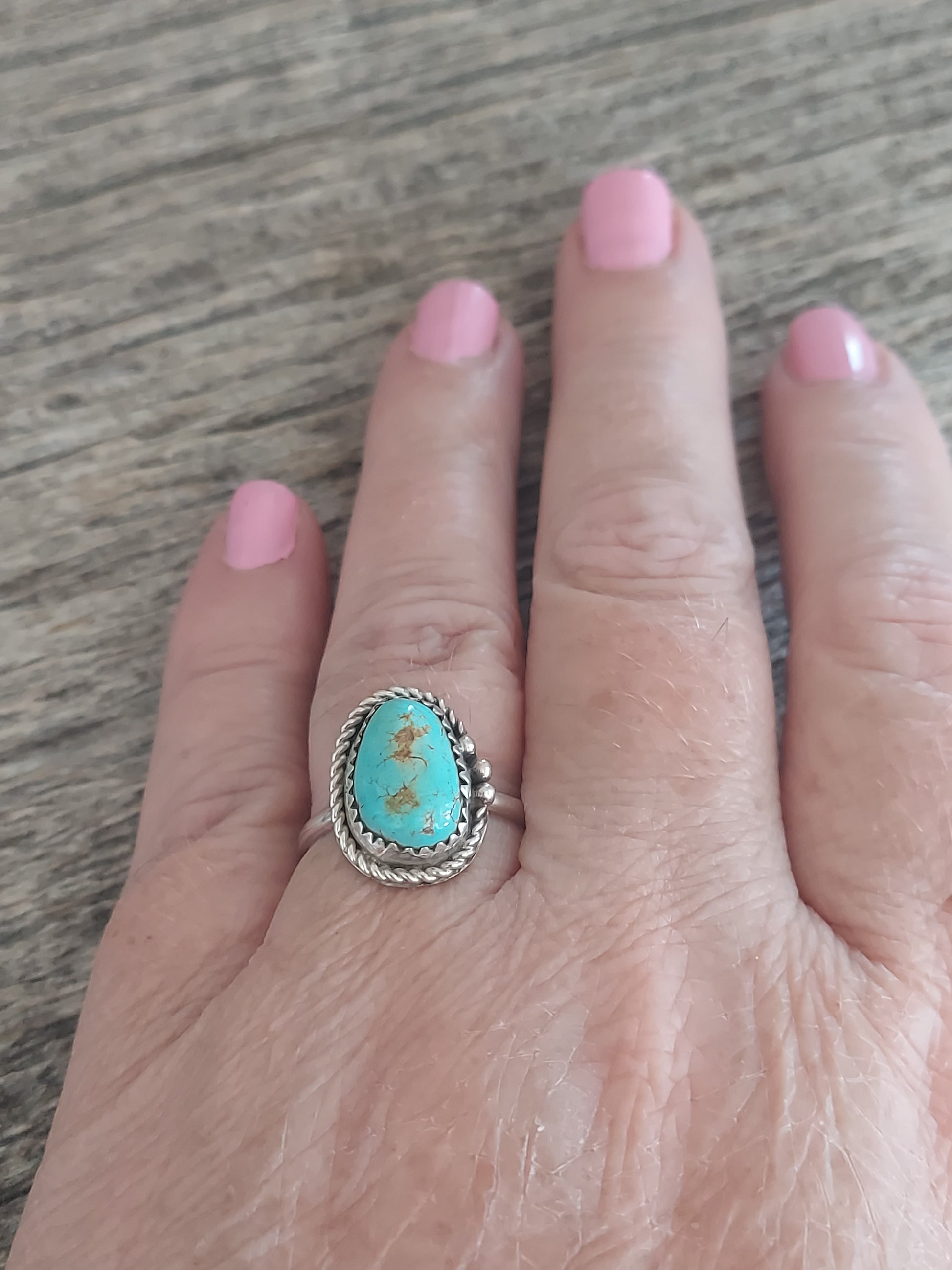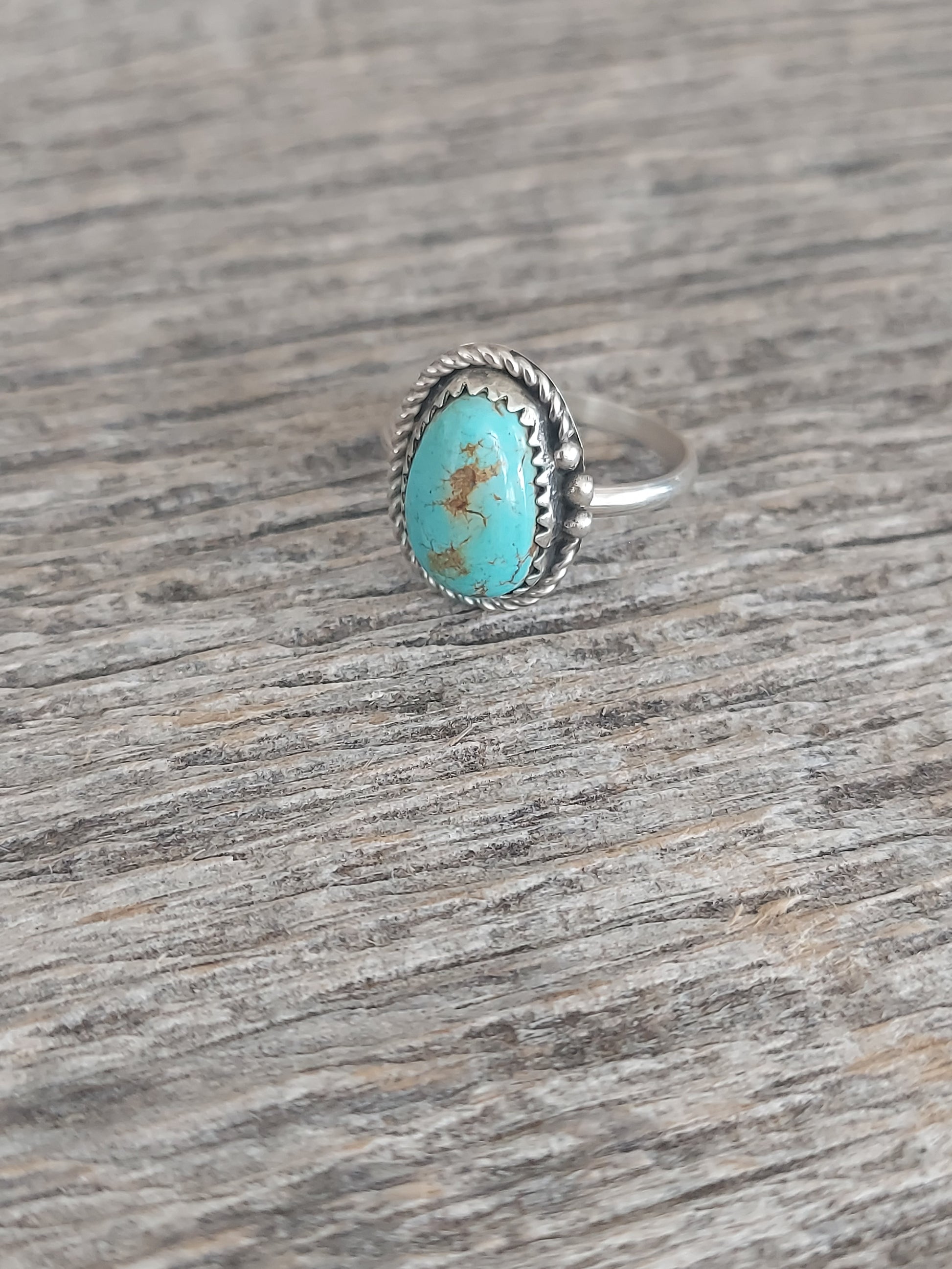 Sterling Silver Turquoise Ring with rope and 3 small silver circles stamped
