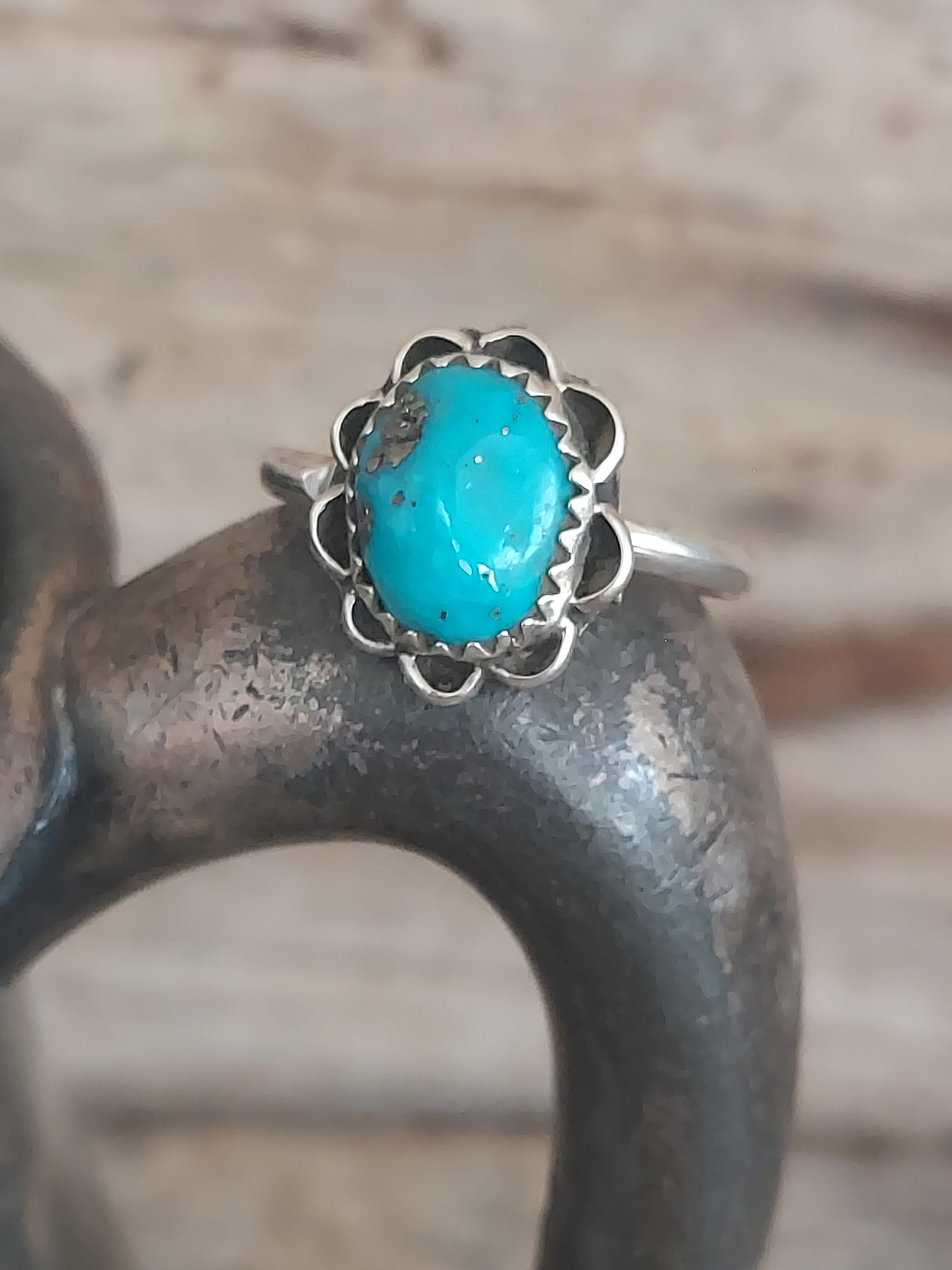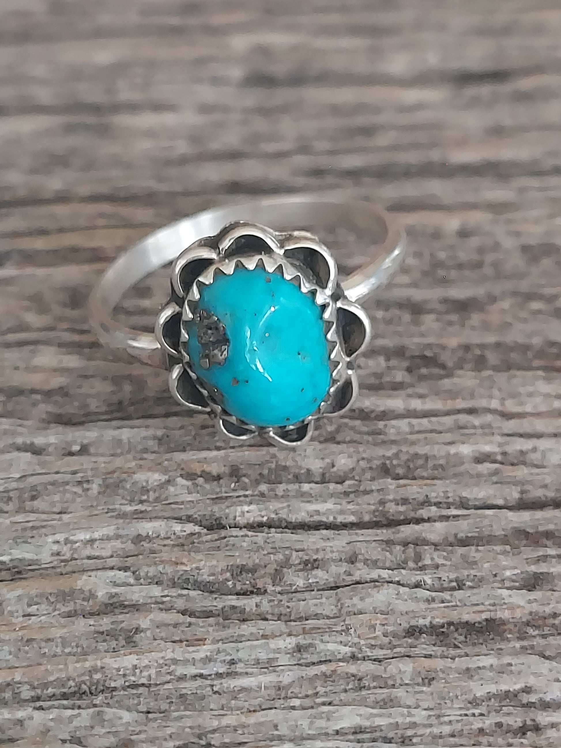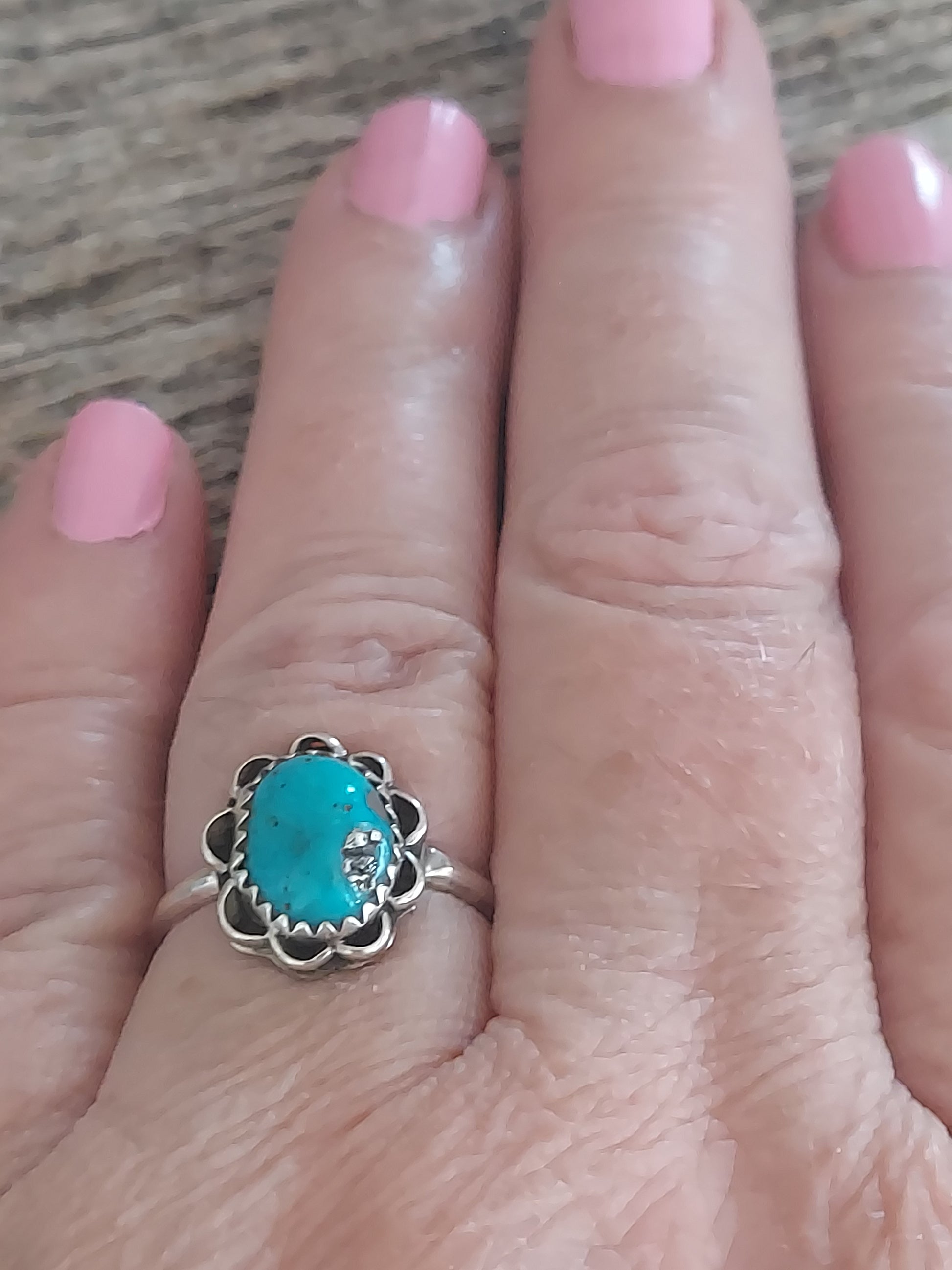 Strling Silver round Turquoise stone with scalloped edges Stamped