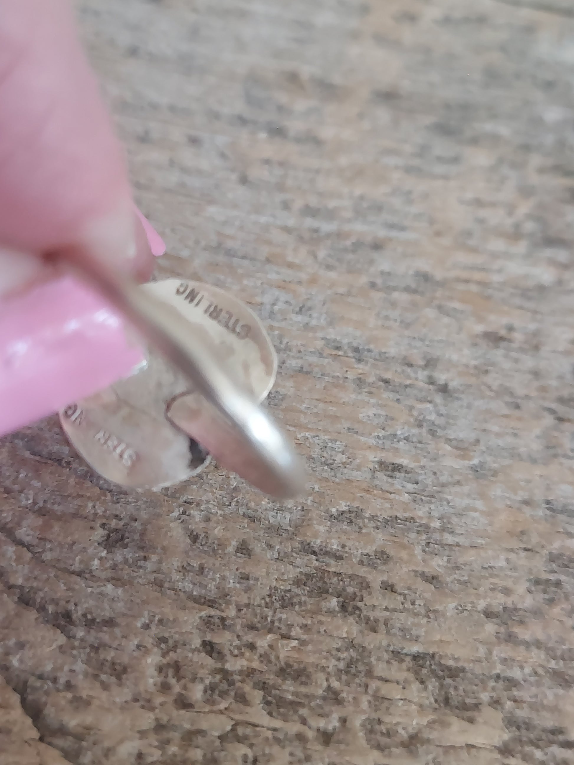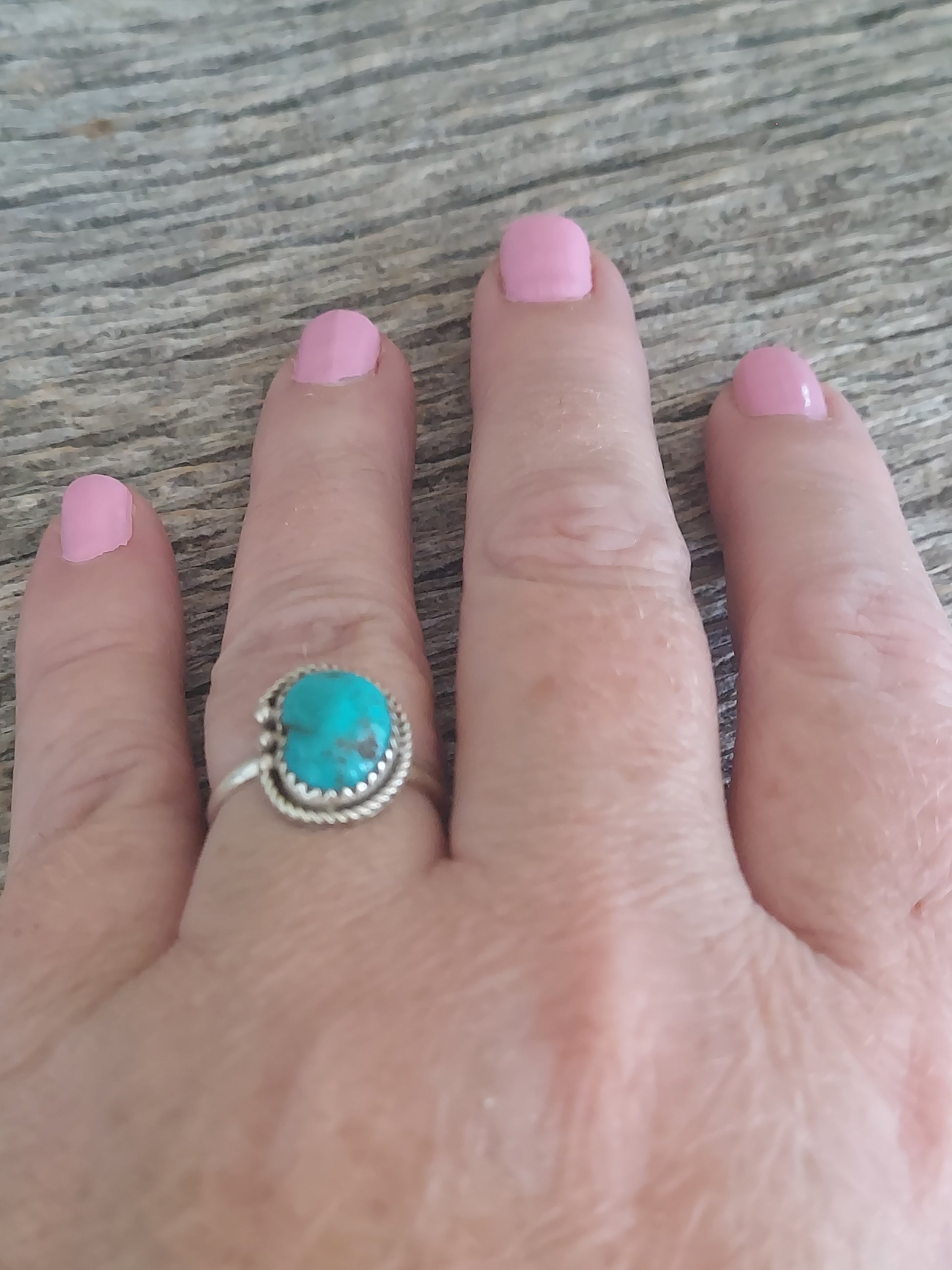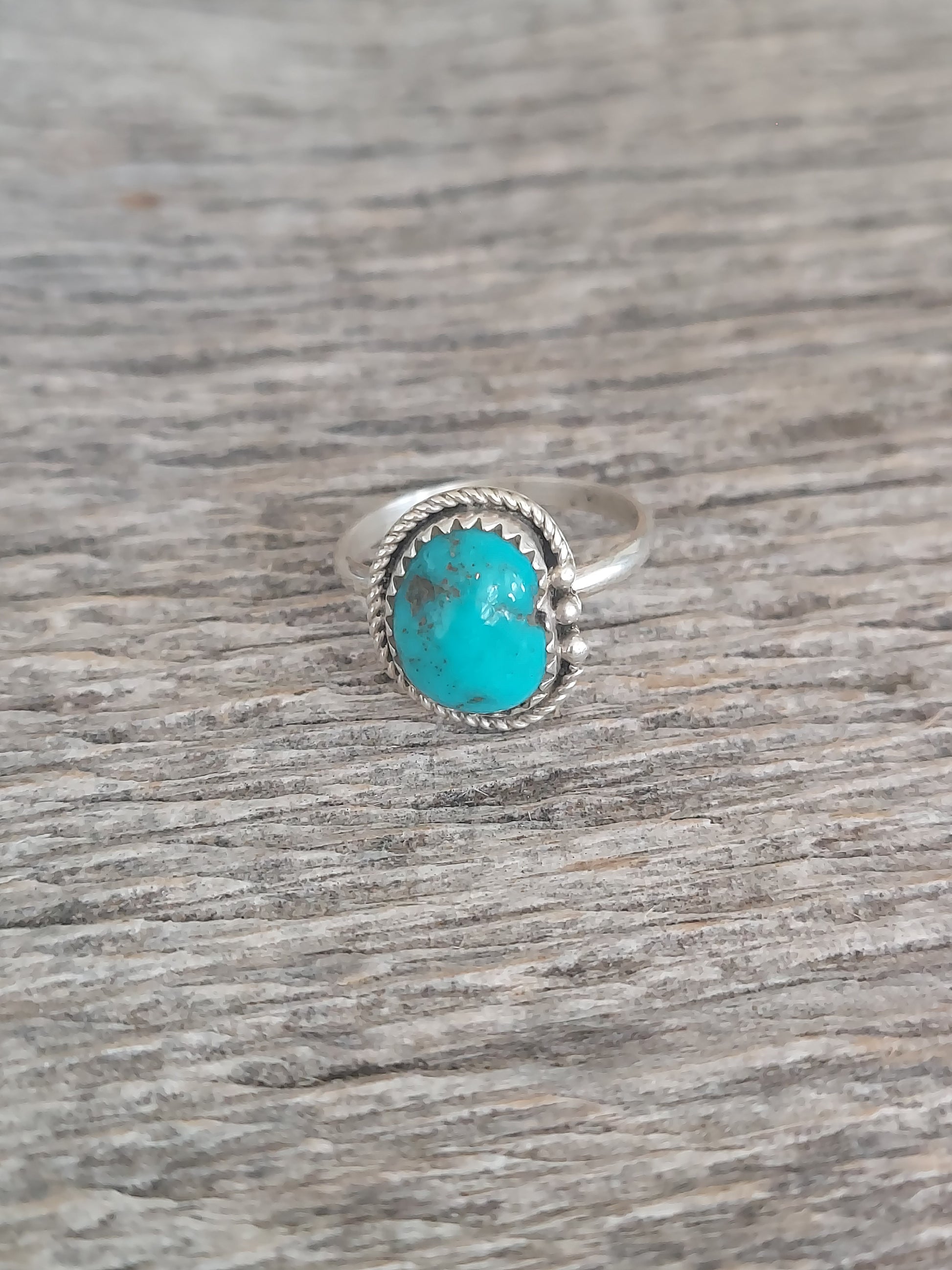 Sterling Silver Turquoise Ring with rope and 3 small silver circles stamped