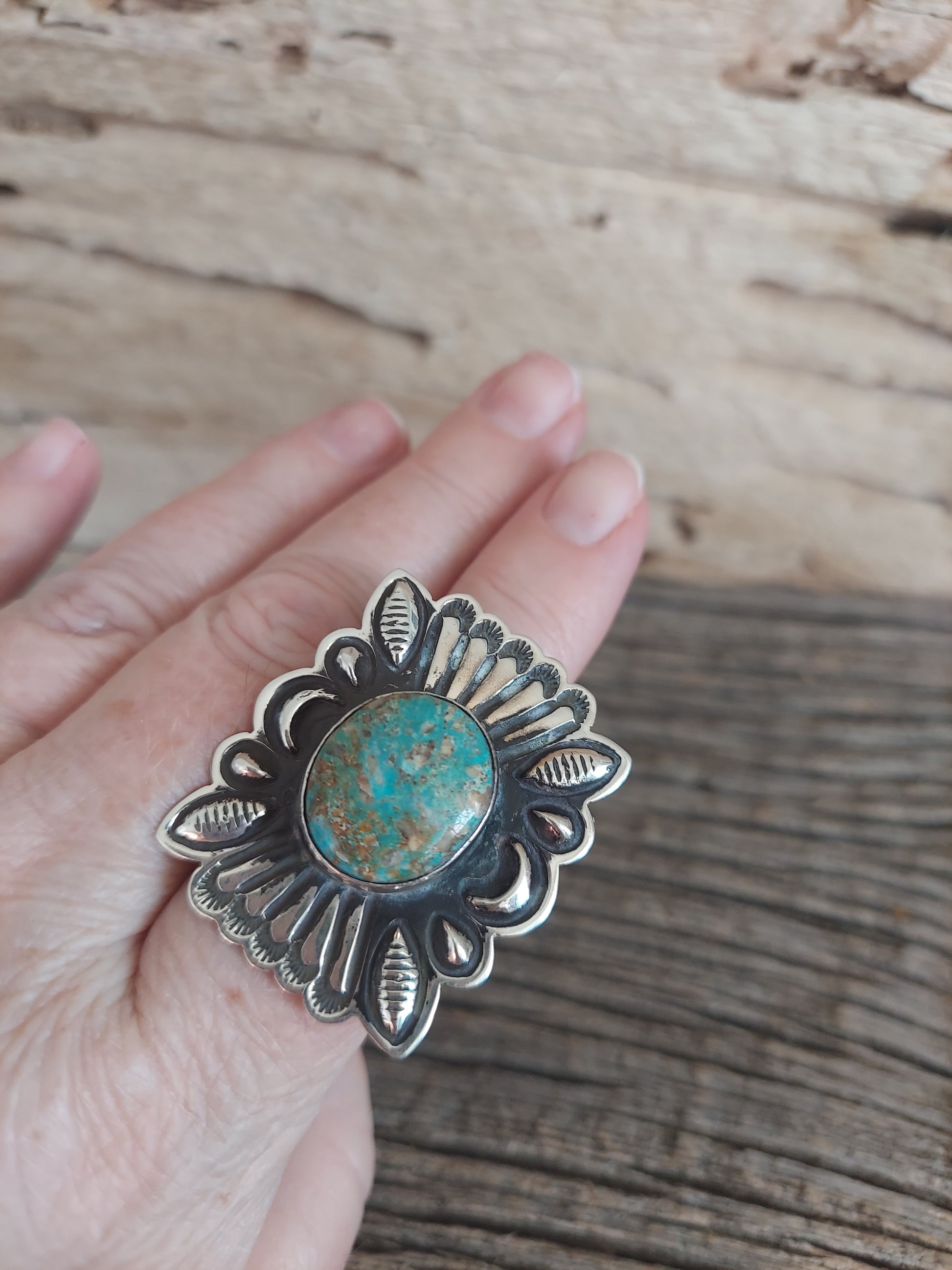 Sterling Silver Green Turquoise Stone with Square Concho.